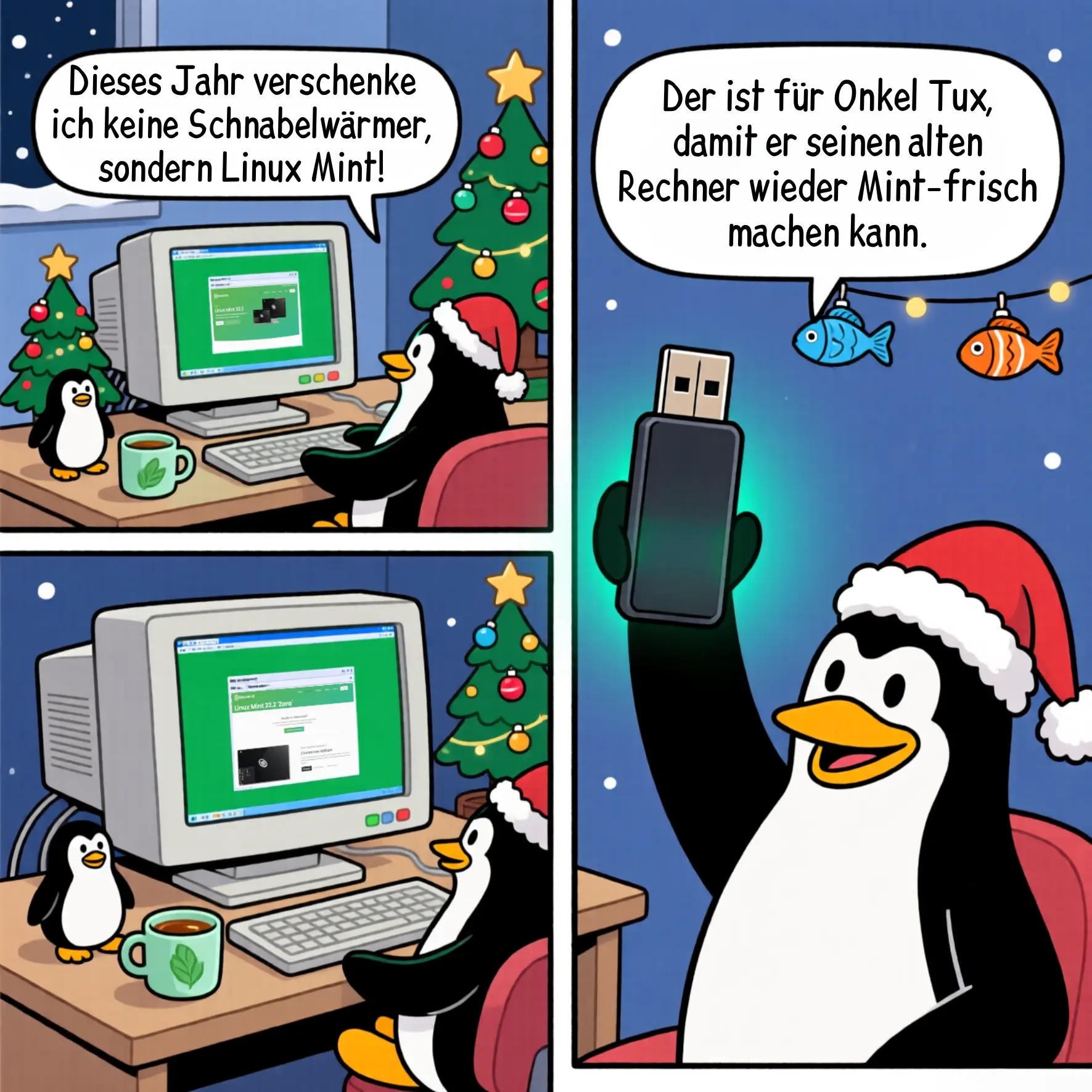Entstehung: Die Comics wurden mit KI nach meinen Prompts erstellt und von mir mit IOPaint und GIMP nachbearbeitet und anschließend in Inkscape mit Text versehen. |