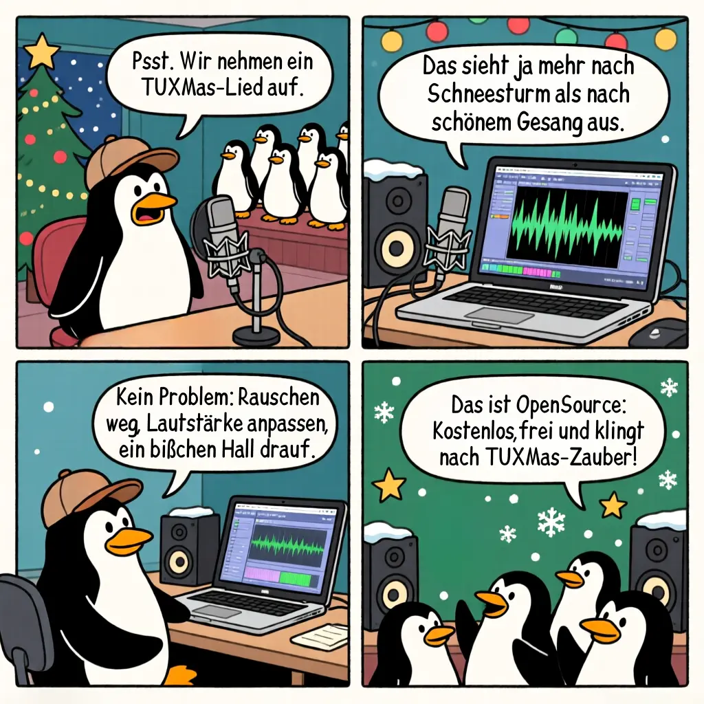 Audacity (www.audacityteam.org/) ist ein kostenloses OpenSource-Programm für Linux, Windows und Mac, mit dem Ihr ganz einfach Tonaufnahmen machen und diese bearbeiten könnt. Macht damit z.B. einen weihnachtlichen Podcast, ein kleines Hörspiel oder nehmt Weihnachtslieder auf. Natürlich könnt Ihr damit auch andere Ideen umsetzen und die reichhaltig mitgelieferten Effekte nutzen. |