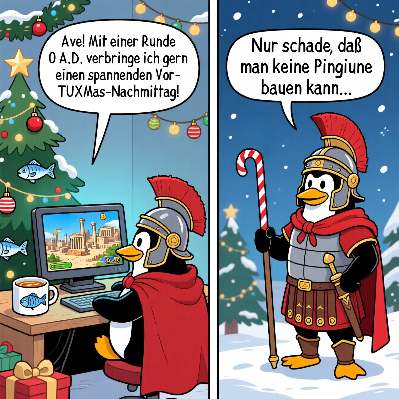 Entstehung: Die Comics wurden mit KI nach meinen Prompts erstellt und von mir mit IOPaint und GIMP nachbearbeitet und anschließend in Inkscape mit Text versehen. |